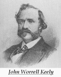 In 1872, Mr John Worrell Keely (1837-1898) who was carpenter and mechanician at Philadelphia presented his discovery to generate energy out of the ether by a vibrating tunig fork. Keely started experiments to find out how to tap this energy in larger scale and transform it into useful work. Ether therories started to be very fashionable some decades before the turn of the century, as the theory of light was not very developed at that time. The most common opinion was that light needs a medium to spread. Compared with spreading of water waves, this seemed to be a feasible hypothesis. After Michelson and Morley's intereferometric experiments, this hypothesis failed. However, even today's followers of free energy machines do not care very much about this result... |