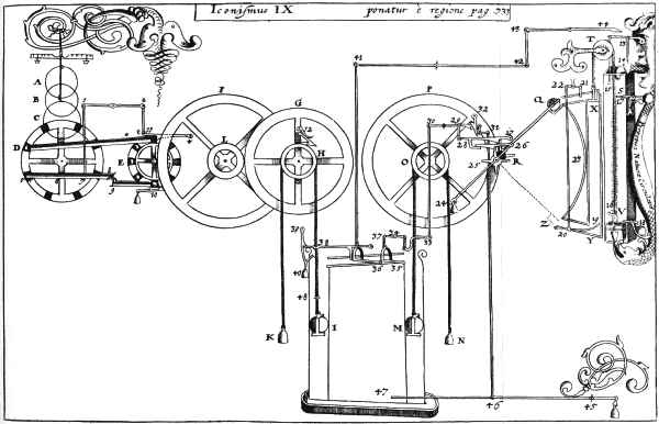 In Schott's 1664 magnum opus Technica Curiosa we find not only descriptions of the sensational experiments performed by Otto von Guericke, but also numerous images and descriptions of the most recent perpetua mobilia of mid-seventeenth century. Not all of these devices were regarded as operable. Schott gives the example of a stunningly complex mechanism being invented by Johann Joachim Becher (Technica Curiosa, p.732). The elector of Mainz, Hans Philipp von Schönborn, even erected a tower to house the whole machine and set it into operation. The gigantic effort was performed to keep a clockwork running!