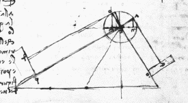 It is always a good idea to check if Leonardo da Vinci had made any comments about the particular mechanical topic which is discussed. In fact, Leonardo made in his notebook Sul volo degli uccelli ("About the birds' flight") drawings which show how forces act onto ramps of different steepness. Thus Leonardo came pretty close to Stevin's analysis, although he had a different application in mind.