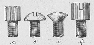 Eine Auswahl von verschiedenen Schraubenkopf-Formen um 1900