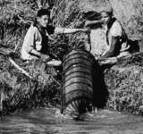 In places were swiftly running water is abundant, even primitive turbines survived until the twentieth century like these in the austrian Alps. Their efficiency is bad, but sufficient enough for the purpose, which in this case is grinding of marbles. |