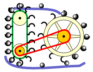 PMMs which are based on rolling balls easily can be debunked. As each single ball runs on a closed path, the total energy win is zero. The shape of the path has no influence onto the energy bilance. In this case, friction is the correct explanation for the failure this type of machines. Friction is not only found in the bearings of the wheels, but also in the work to bend the conveyer belt or inner friction caused by banging of the balls into their locations of the wheel's shovels. |
